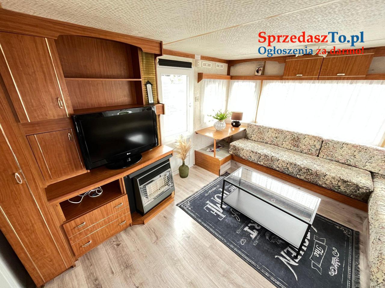 - SALON: Wygodna kanapa narożnikowa, meble do przechowywania, piecyk gazowy, telewizor, stolik, dodatkowe wyjście na zewnątrz, NA PODŁODZE NOWE PANELE