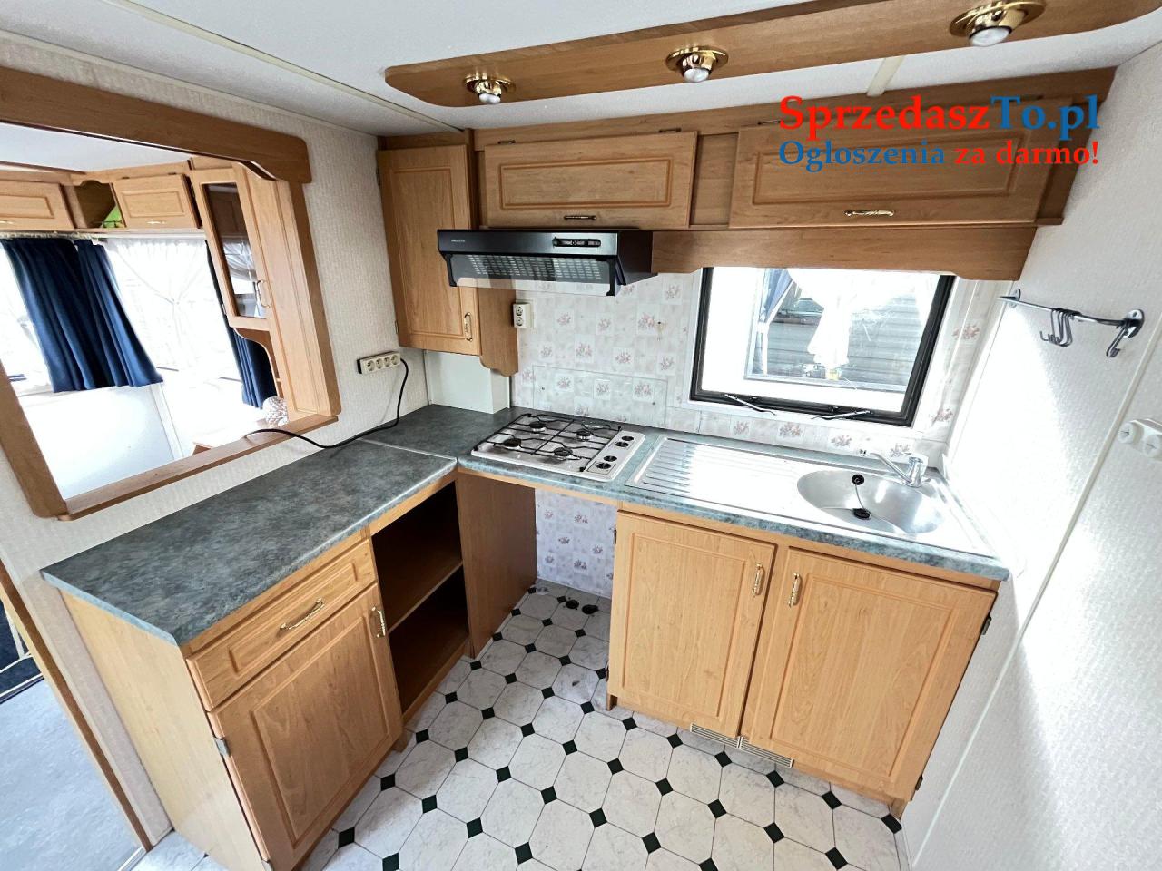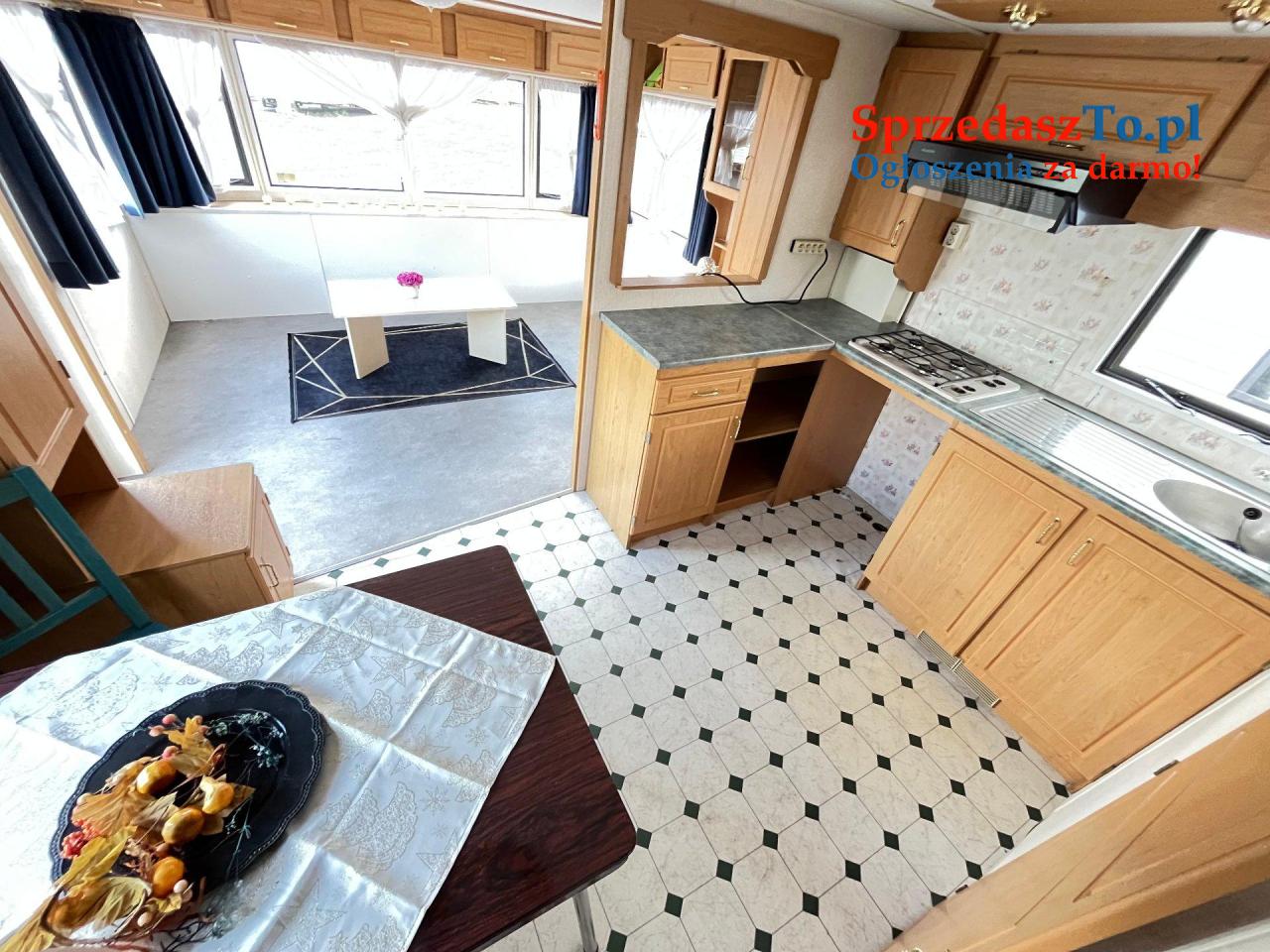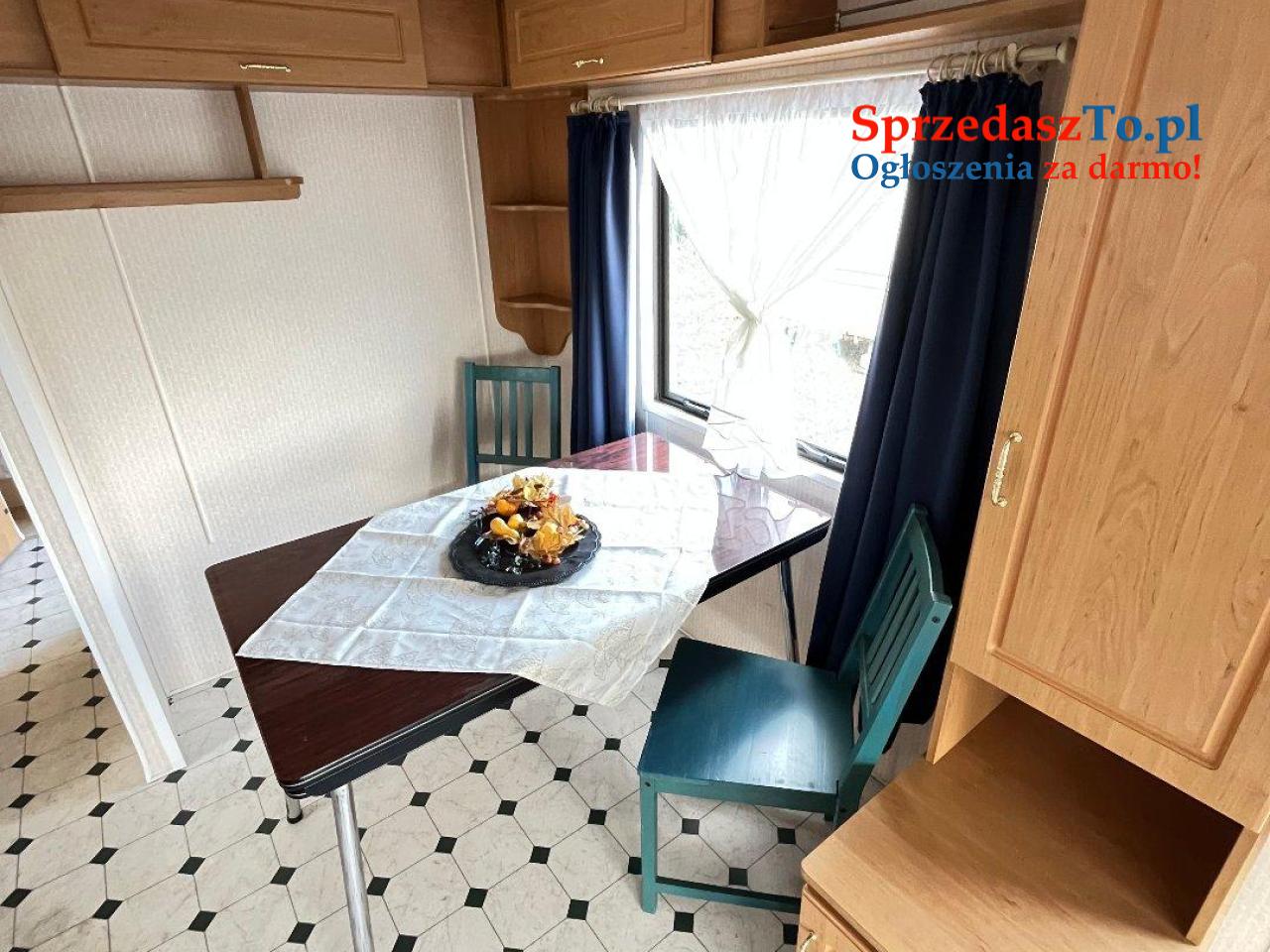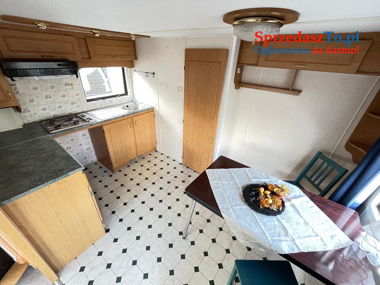 - KUCHNIA: szafki do przechowywania, zlew, gazówka czteropalnikowa, część jadalniana z stołem i dwoma krzesłami