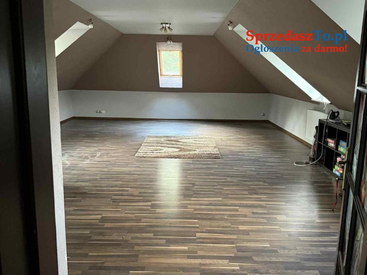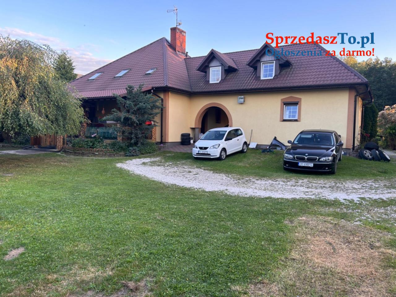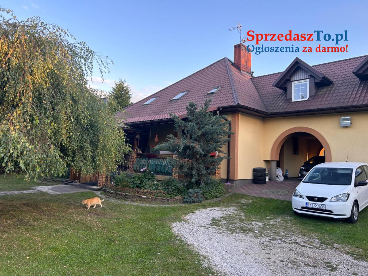 Sprzedam dom w miejscowości Łopuszno 26-070. Dom znajduje się na ślepej uliczce ok. 200m od głównej drogi na działce 25 arowej. Jest kanalizacja. Dom wybudowany w 2002 roku. Rozmiary domu 12x40x10 + wiata przejazdowa 4x6 + 2 garaże 8x6. Brama garażowa otwierana z pilota, podwórko wyłożone kostką granitową. Na parterze domu znajduje się kuchnia ok. 14m2, spiżarnia 5m2, jadalnia 24m2, salon 26m2, dwa pokoje po 13m2, korytarz 6m2, łazienka z prysznicem i toaletą 9m2, wiatrołap 4m2, kotłownia na dole ok. 7m2. Na piętrze: 3 pokoje, sypialna 26m2, pokój 40m2, pokój 11m2, łazienka z wanną 8m2, toaleta 3m2, korytarz i pokój nad garażami 66m2, pomieszczenie strychowe ok. 20m2. Duży taras zadaszony od strony ogrodu ok. 40m2. Na górze z sypialni wyjście na balkon. Na działce znajduje się garaż zadaszony ok. 45m2. Rolety antywłamaniowe, alarm. Okolica cicha i spokojna. W pobliżu Szkoła Podstawowa, Szkoła Średnia, dużo sklepów, basen otwarty na ośrodku sportowo-rekreacyjnym.