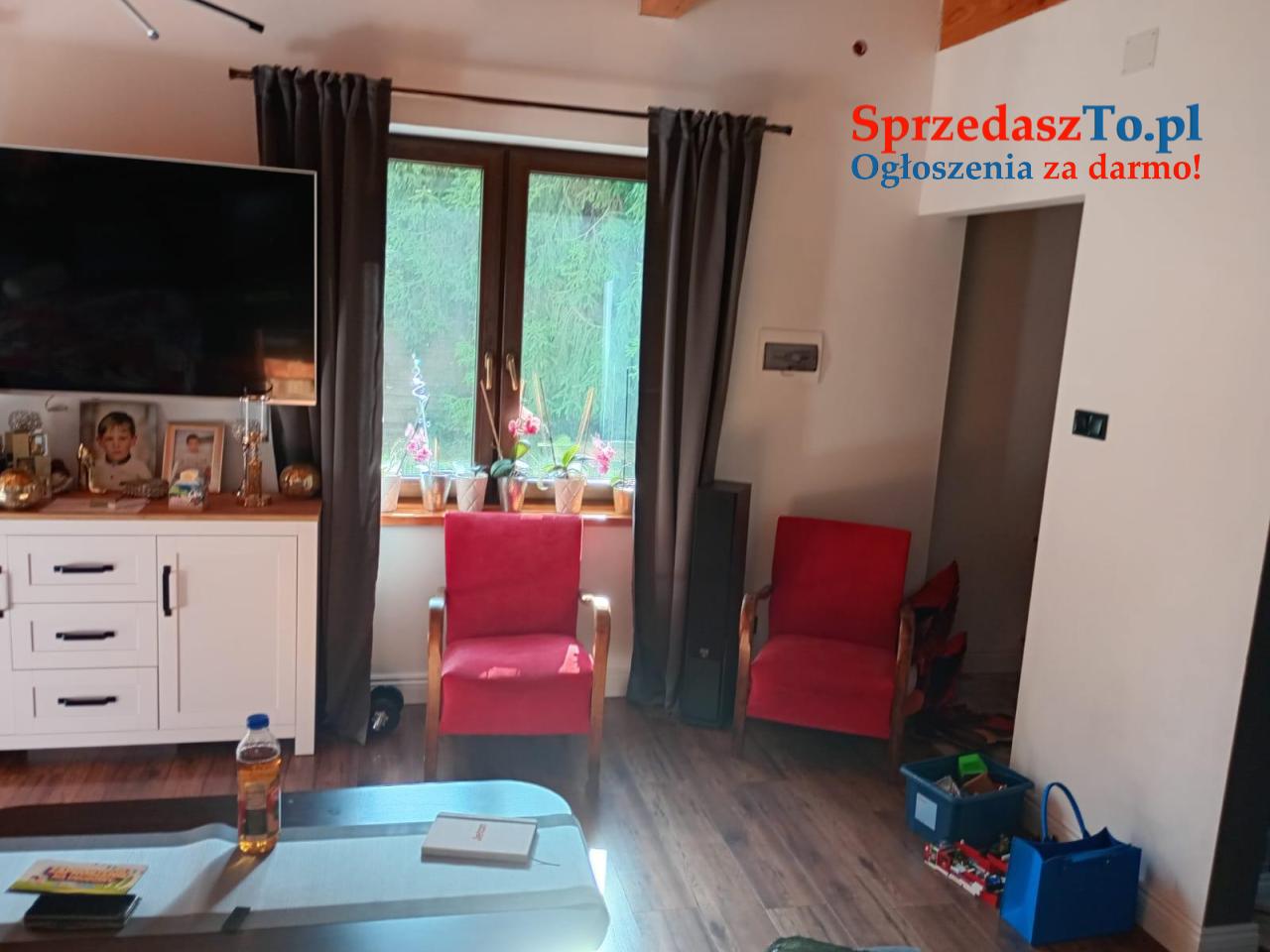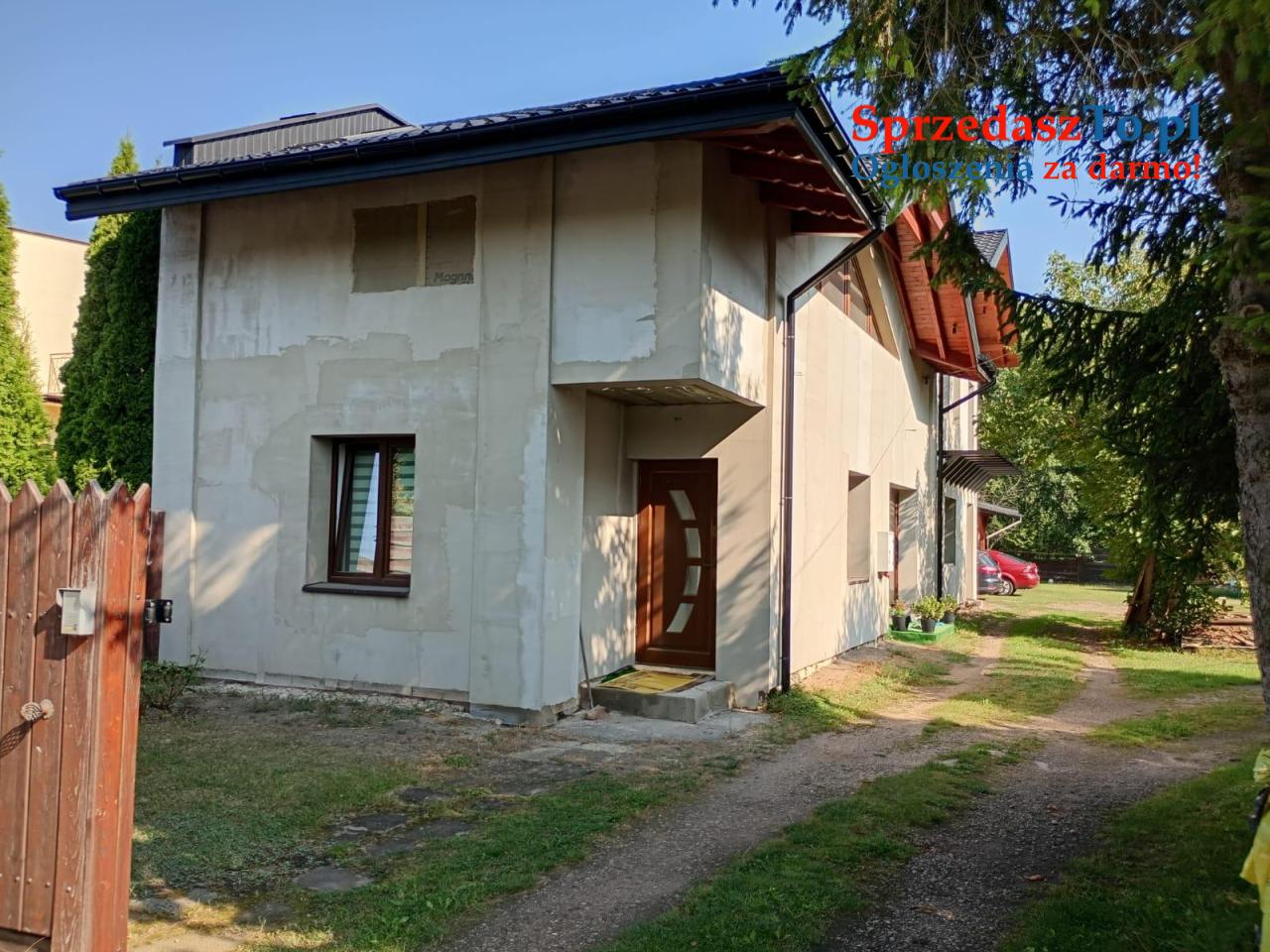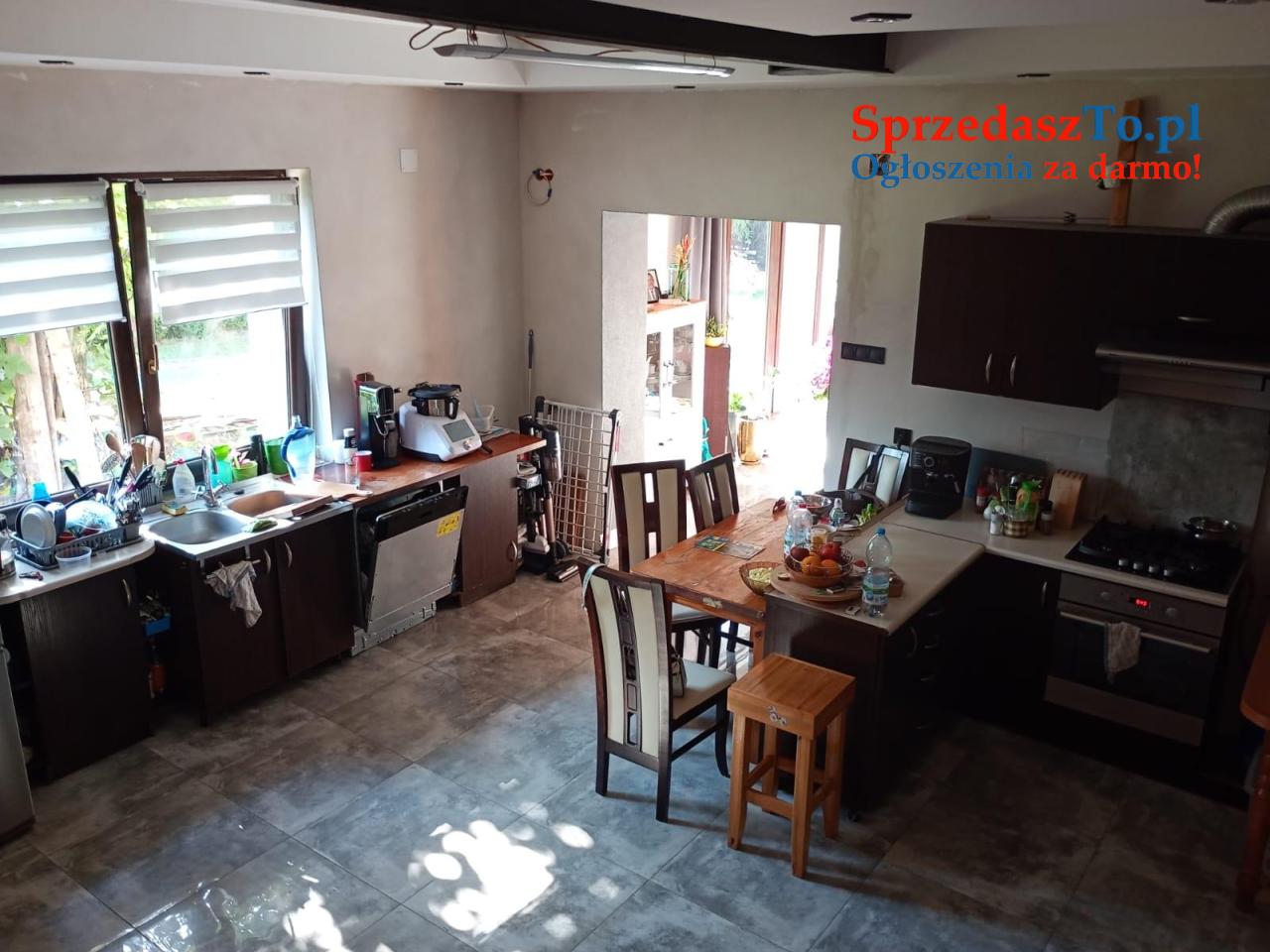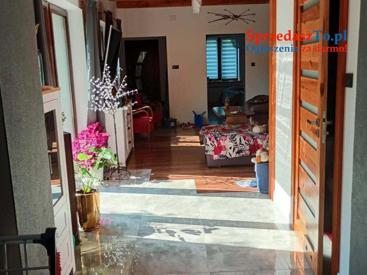 Dom 200 M2 na działce 1000m2. Ocieplony styropian grafit 15cm, strop z bali modrzewia, parapety i futryny modrzew. Piec na pellet 5 klasa, nowa elektryka siła, alarm Satel, monitoring tylko podpiąć przewody pod styropianem. Okna 3 szybowe, drzwi drewniane, okna dachowe Fakro, więźba z krokwiami rzeźbionymi, światełka w podprzybitce. Wiata na 3 auta, altana 5x 4 m. Studnia, za płotem rzeka. Brama wiśniowski na pilota. Do częściowego wykończenia. Więcej info na tel 517-573-770. 509-343-569