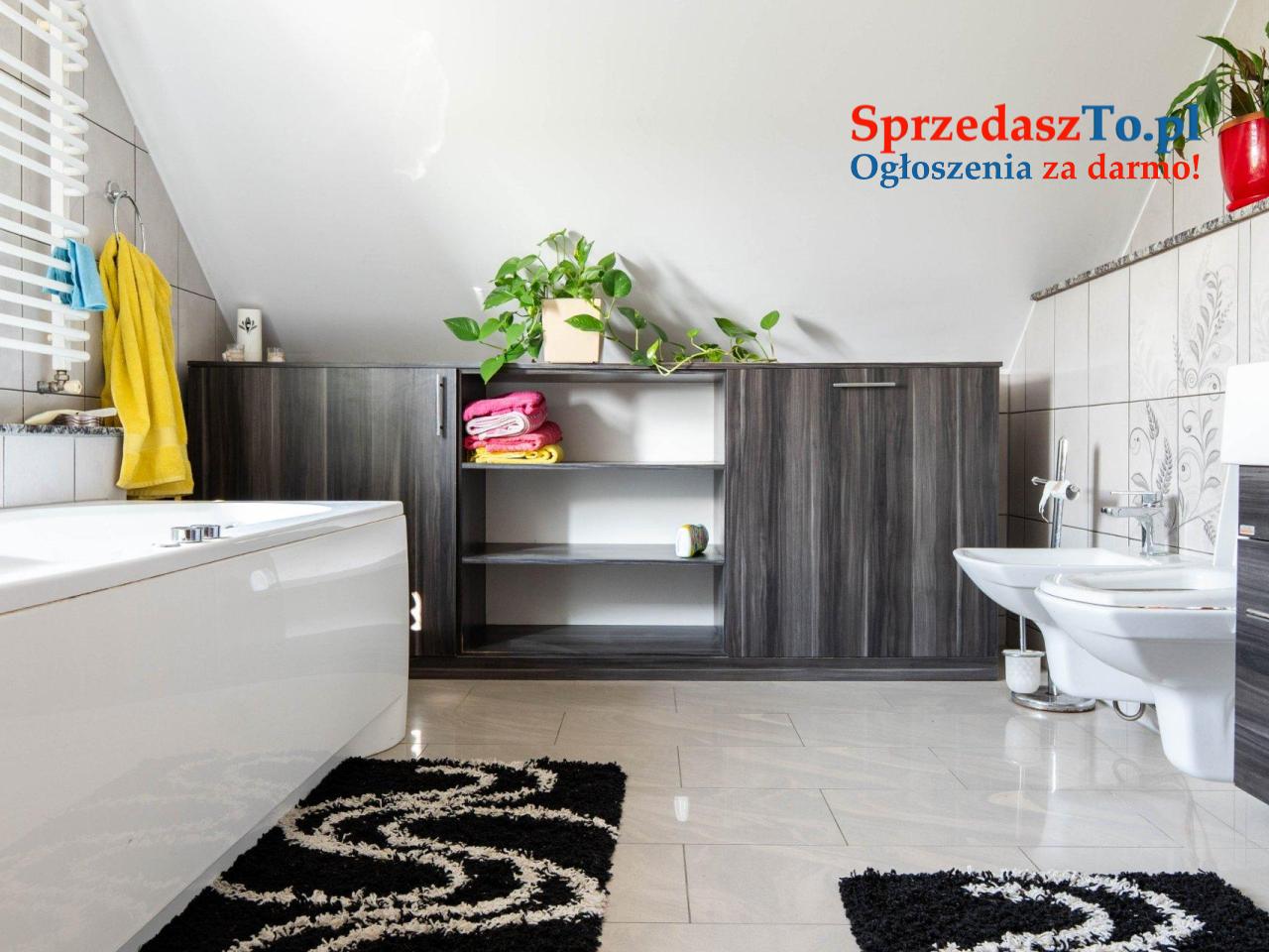 Materiały wykończeniowe – ściany pokryte farbą, lub tynkiem ozdobnym; na podłogach płytki, deska oraz panele