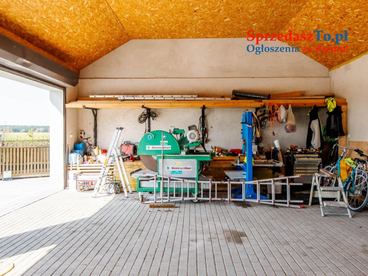 Nowy budynek gospodarczy, który składa się z części usługowej oraz zaplecza socjalnego. Jest to idealne miejsce do prowadzenia działalności gospodarczej, w tym usługowej, jak na przykład mechanika pojazdowa, lub handlowej; wówczas budynek może służyć jako magazyn na różnego rodzaju towary i materiały.