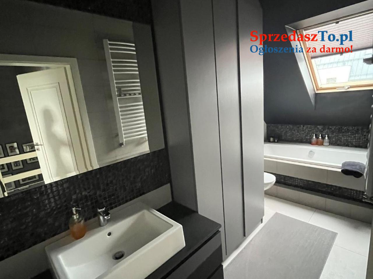 • Dwie łazienki – jedna toaleta, druga z wanną oraz zabudowanym miejscem na pralkę i suszarkę,