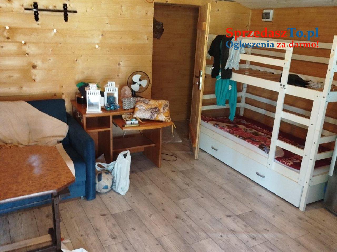 Stoi na niej domek rekreacyjny drewniany ocieplony postawiony 2020r