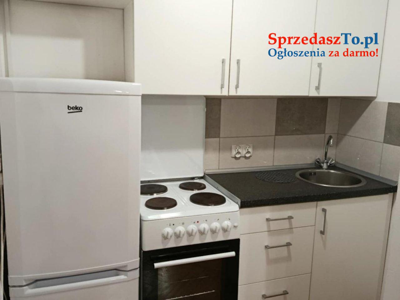 Kuchnia w całości wyposażona w meble, lodówkę, kuchenkę elektryczną.