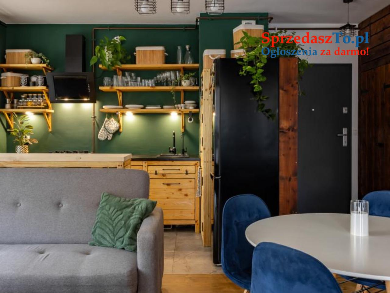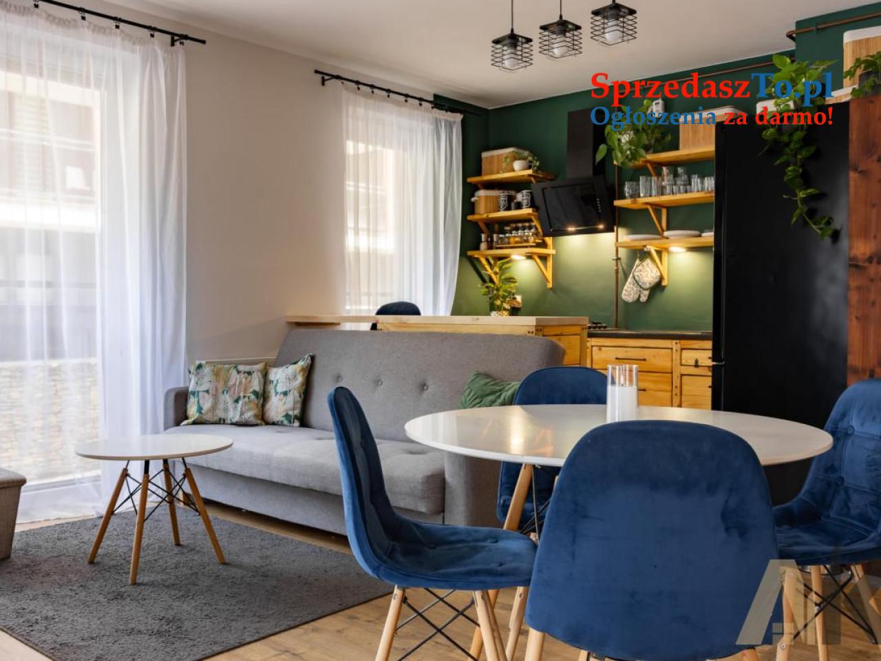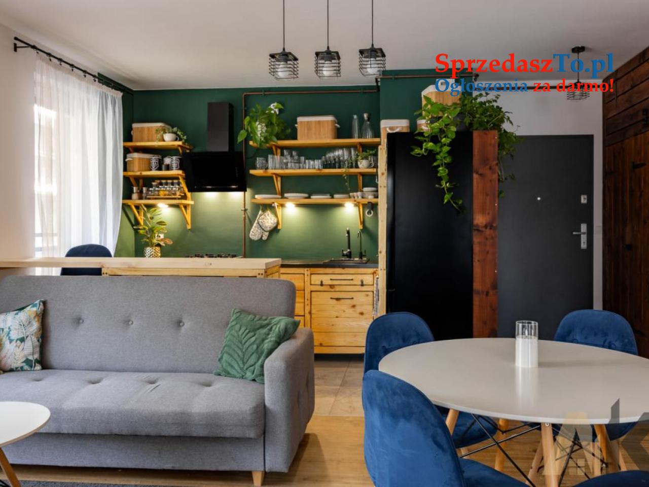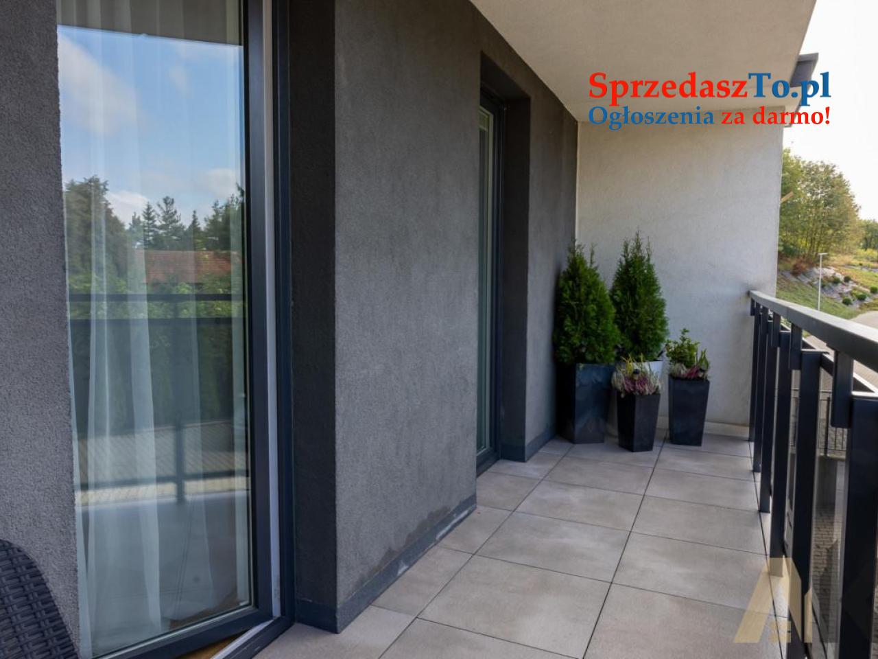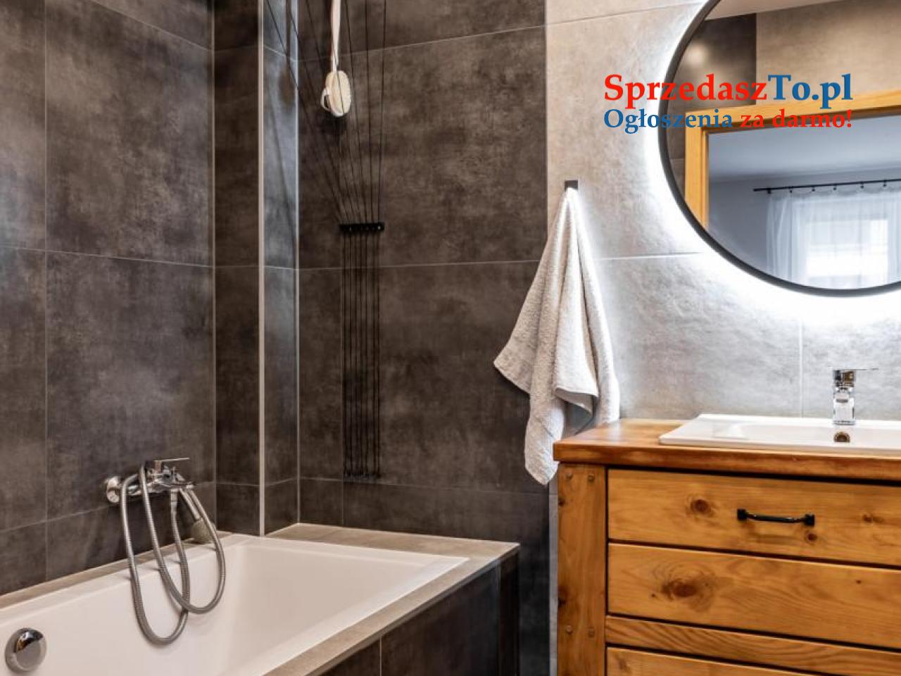 Mieszkanie pozostaje umeblowane tj. stała zabudowa w kuchni, szafka RTV, łóżko w sypialni, szafy w zabudowie, szafka umywalkowa i zabudowy w łazience, stół z 4 krzesłami + sofa w pokoju dziennym. Budynek jest z 2018r. w świetnym stanie technicznym. Dodatkowo 2 lata temu został zamontowany zmiękczacz wody. Ogrzewanie gazowe, grzejniki. Materiał wykonania mebli z drewna: sosna olejowana.
