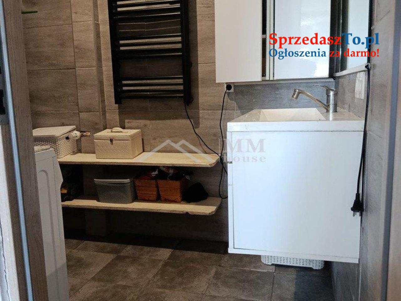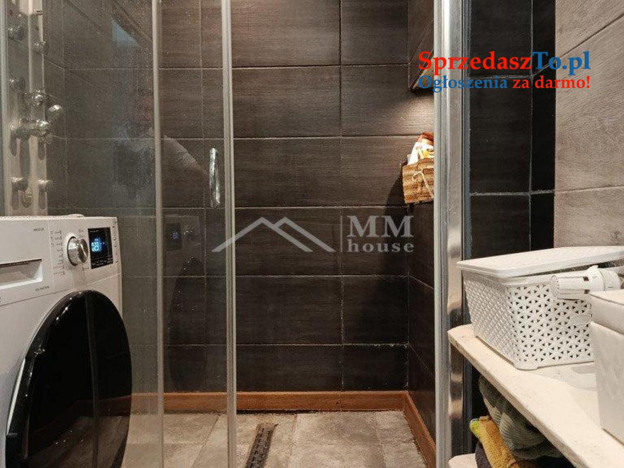 Łazienka: duża, z nowoczesnym prysznicem, miejscem na pralkę, półki i zabudowane szafki